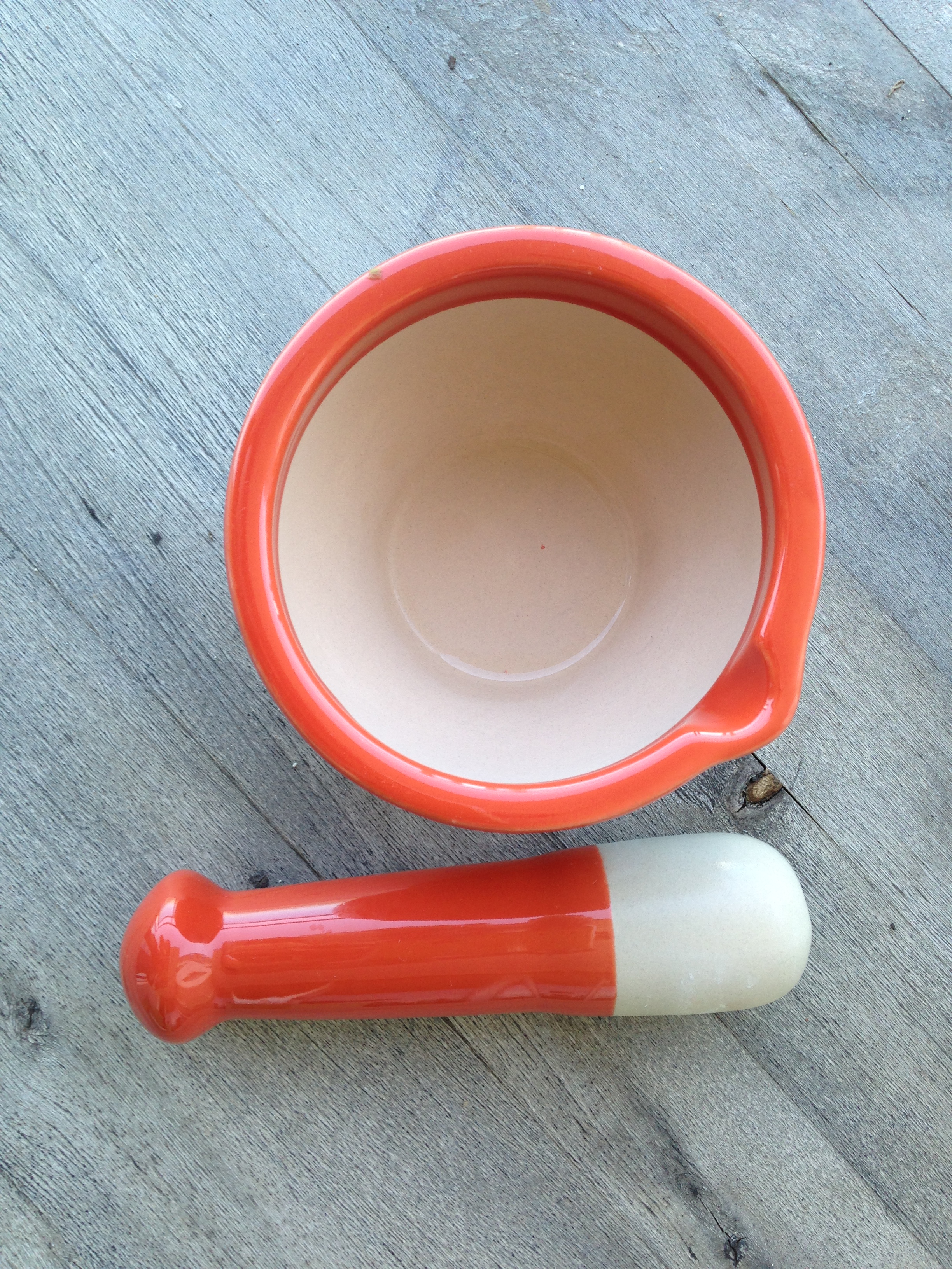 - Cut avocados in half, removing pits, and mash using mortar and pestle or bowl and fork.