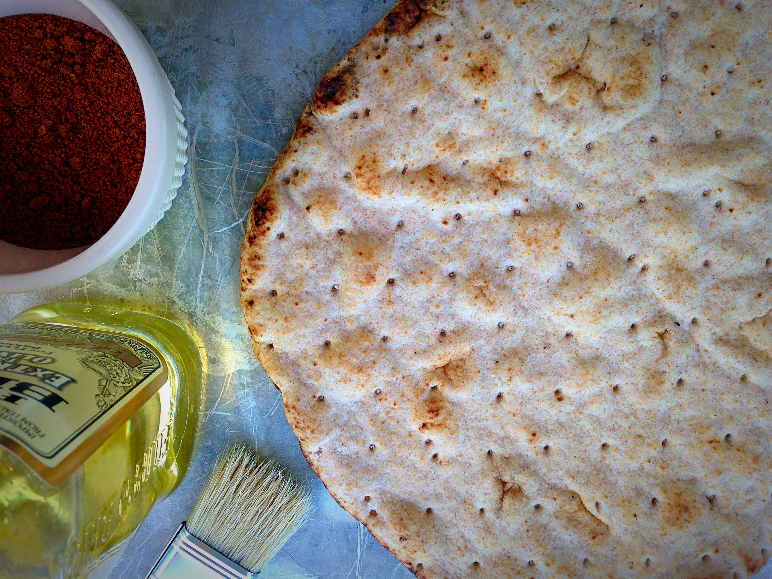 3. Brush lavash with olive oil, and rub on taco seasoning.