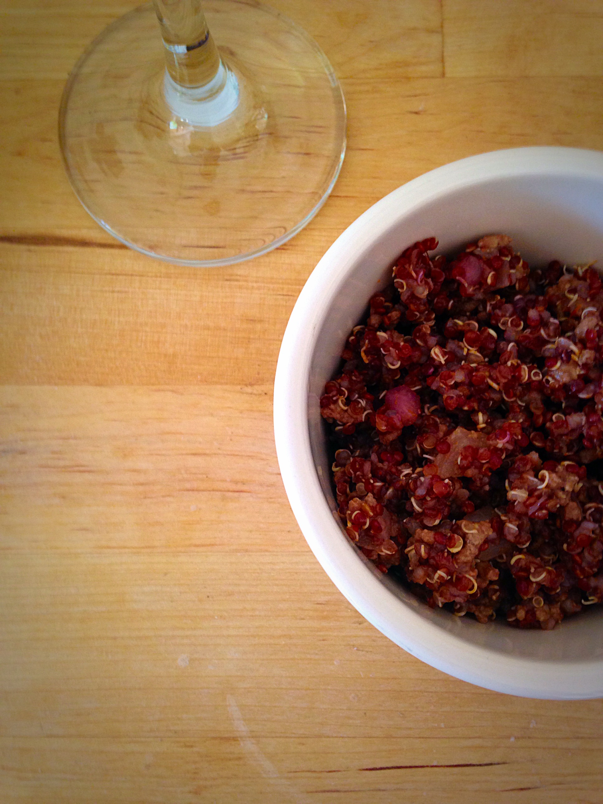 3. Add meat to quinoa and add spaghetti sauce and agave syrup.