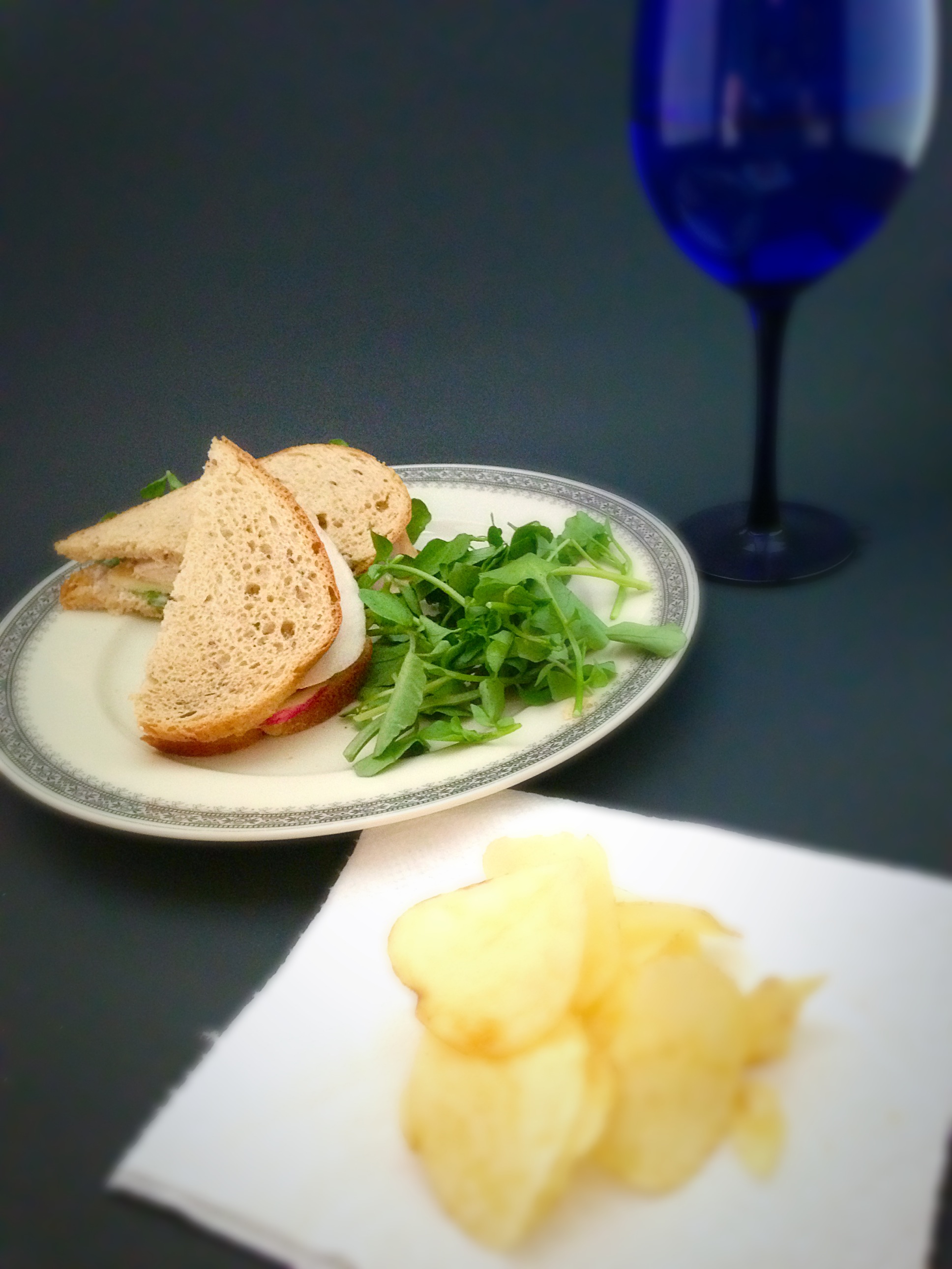 3. Spread layer of goat cheese mixture on one side of bread and layer with watercress, a few slices of apple, turkey and top with other slice of bread.