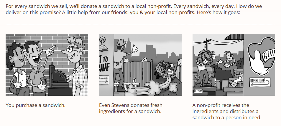 We were inspired by Even Stevens in Lake City, UT because they are a “sandwich shop with a cause” and they are on a mission to end hunger…