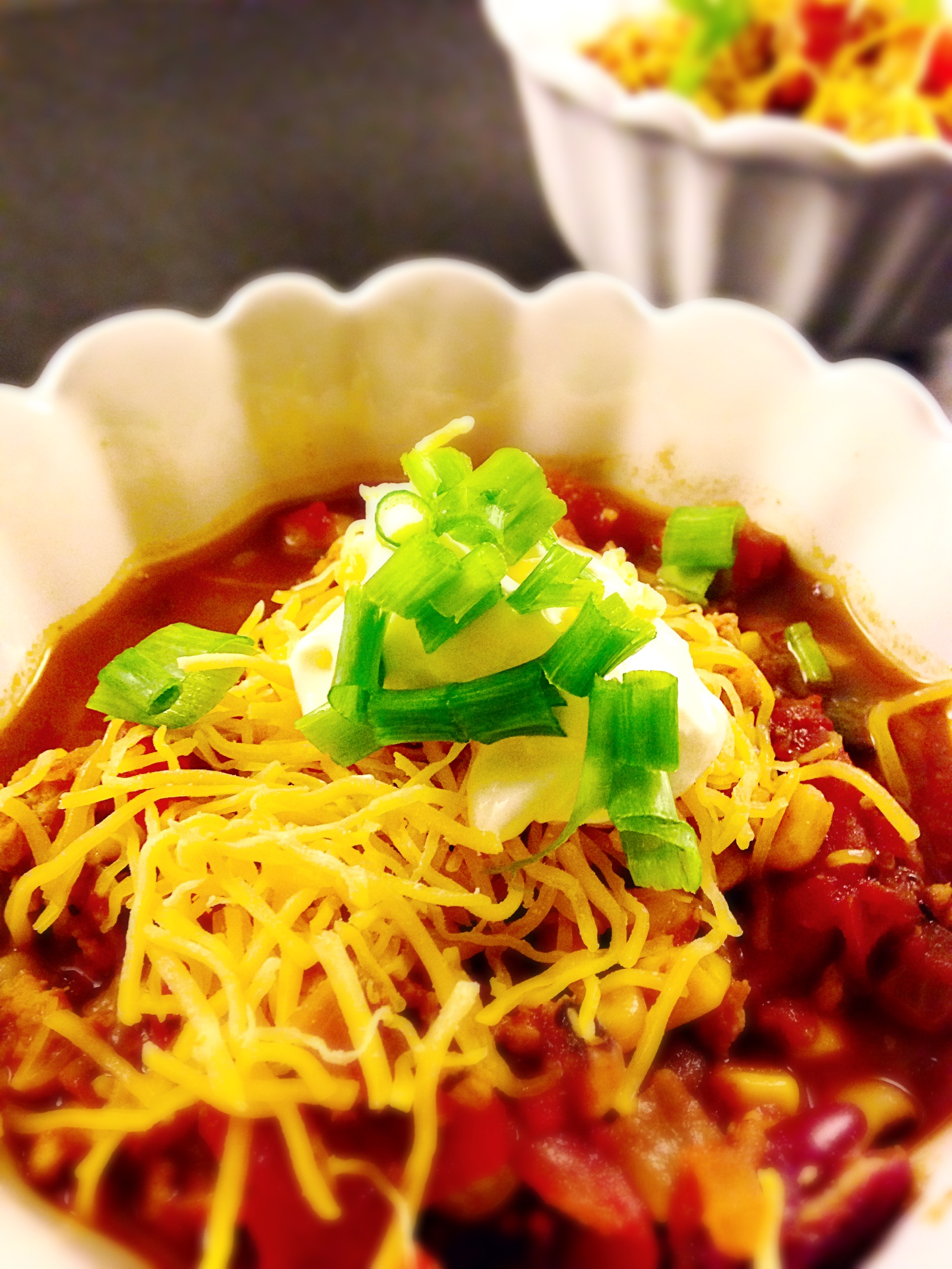 Secret family recipe. No – not really. Wish I could say that I came up with it on my own, but that would be a lie. Got it here, but I normally use ground turkey or ground beef, per Sejin’s request! š http://crockpot365.blogspot.com/2011/12/21-ingredient-chili-slow-cooker-recipe.html