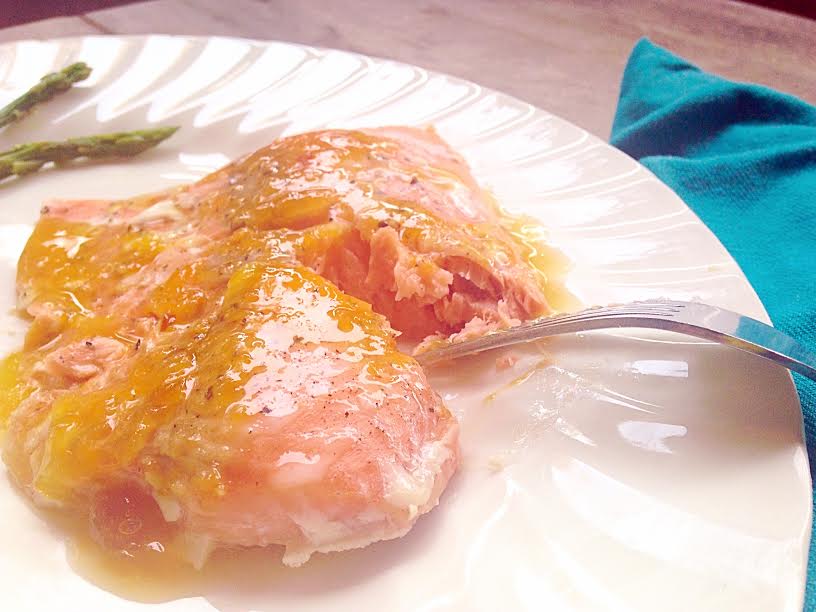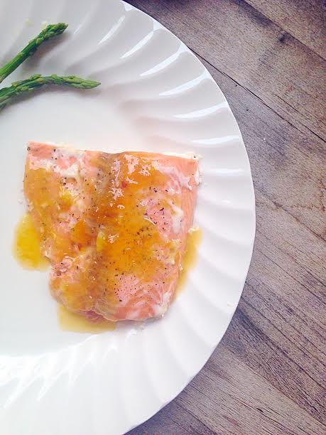 Description: Remember that sunshine drizzle? Well, it’s back and TOTALLY reinvented. Two tips that emerge from this recipe 1) cook your salmon on a bed of wet salt to keep it moist and 2) cook on a lower temperature than you think (200 degrees) so you slowly melt the fat instead of allowing it to ooze out (the white stuff you see).