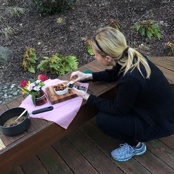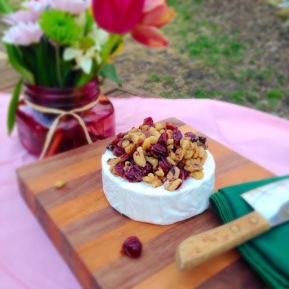 Description: Warm and creamy goat’s milk brie with sweet orange infused cranberries and walnuts dripping down the sides. The perfect crisp spring evening appetizer or dessert.