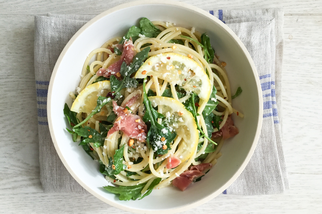 1. Spaghetti with Lemon, Prosciutto and Arugula from The Yellow Table