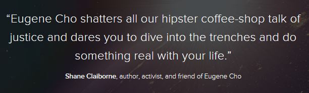 The author, Eugene Cho is the founder and visionary of One Day’s Wages, a grassroots movement of people, stories, and actions to alleviate extreme global poverty. Eugene has been a featured speaker at events such as TEDx, The Justice Conference, and Catalyst. He is also the founder and Senior Pastor of Quest Church, an urban, multi-cultural and multi-generational church in Seattle, WA, where he lives with his family.
